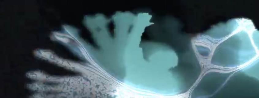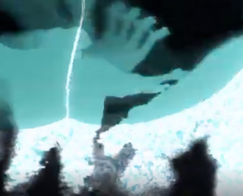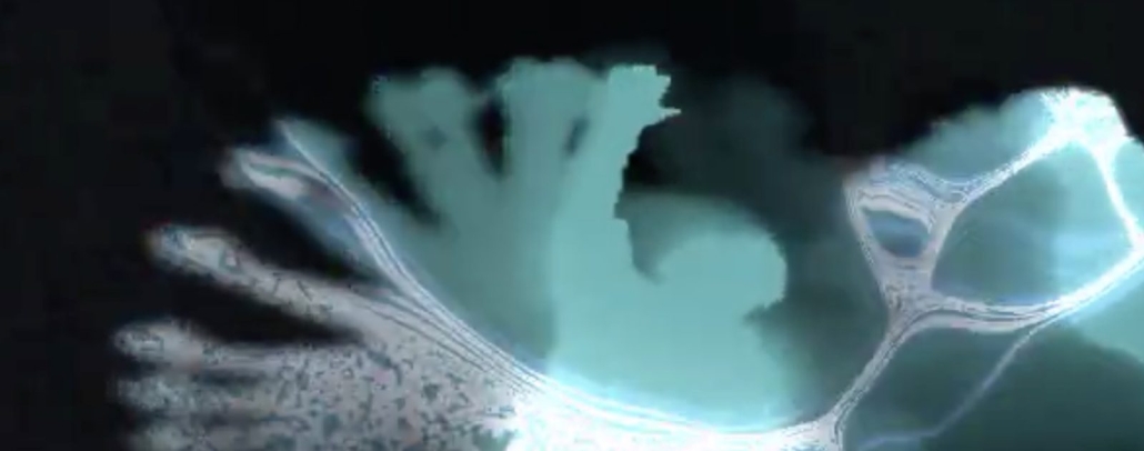 La experiencia propone un recorrido de lo macro a lo micro: desde la escala oceánica hasta la vibración de una partícula. A través de una interfaz interactiva, el movimiento del usuario altera en tiempo real el flujo visual y sonoro, generando ondas, reflejos y estructuras que se fragmentan o se reorganizan según la distancia y la acción corporal . La instalación integra proyección, sonido espacial y sensores de movimiento (Kinect), construyendo un entorno reactivo donde imagen y audio responden a la presencia.
