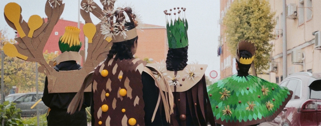 The piece reinterprets elements of the Argentine popular carnival to create an emotional experience and to reflect on migration, colonial legacies, and ecological issues. It focuses on the plant Conyza bonariensis, which arrived in Europe from Buenos Aires through wool imports in the 18th century. Classified as a weed and an invasive species in Europe, it is studied in Argentina for its resistance to glyphosate, a herbicide linked to cancer in our region.